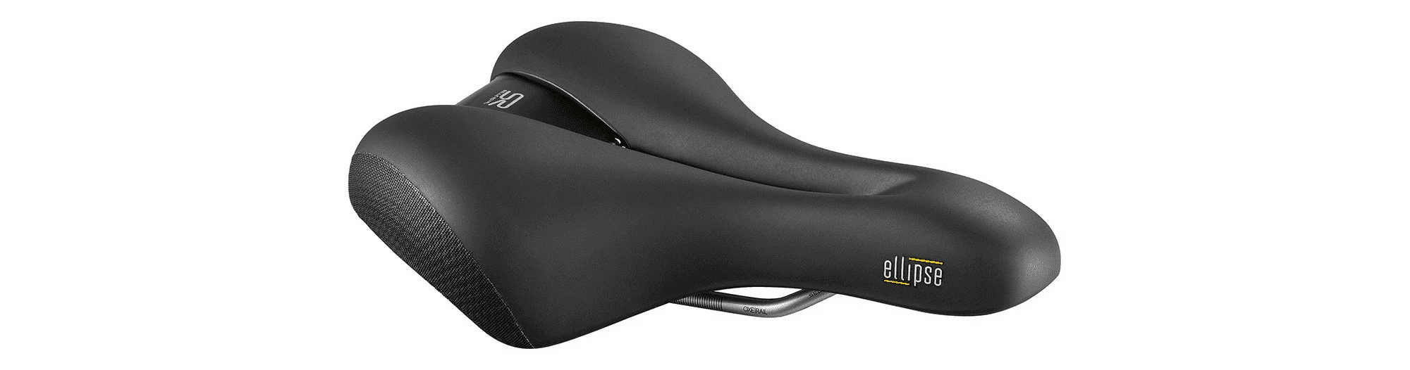 La Selle Royal Ellipse Moderate Woman est une selle de forme anatomique qui comporte un renfoncement au milieu de la selle pour soulager la pression. Le Skingel 3D, est une structure de gel tridimensionnelle qui aide à soulager la pression sur la zone périnéale et rend votre voyage plus confortable. Le matériau à double couche sur les côtés, également appelé Double Cover, rend la selle particulièrement résistante aux chocs et aux rayures. Des élastomères ont été ajoutés à l’arrière de la selle pour une meilleure absorption des chocs