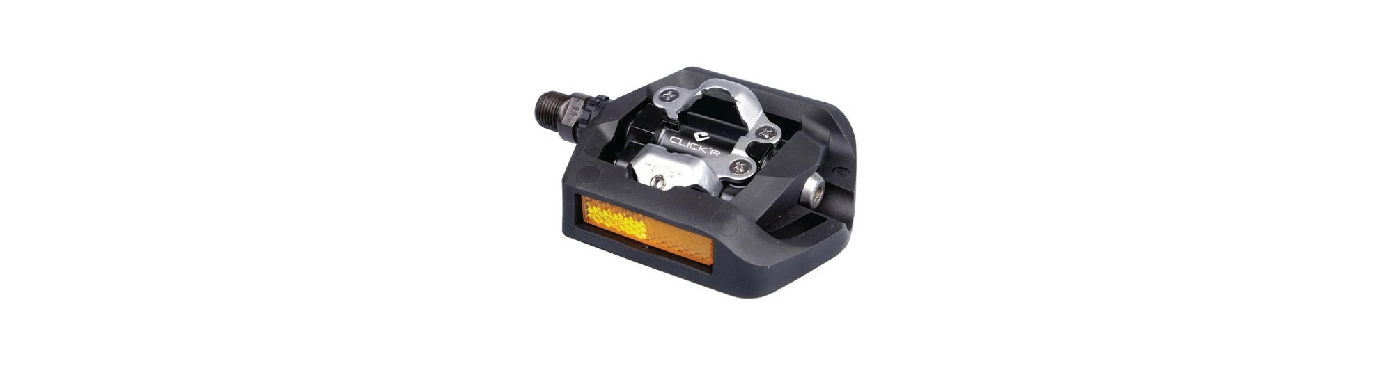 Shimano Click’R est un concept de pédales destinées aux utilisateurs de pédales à enclenchement automatique. Comparées aux pédales plates classiques ou aux cale-pieds, les pédales à enclenchement automatique offrent un meilleur transfert de puissance de vos jambes vers le vélo. Les pédales Shimano Click’R vous permettent d’aller plus loin, plus longtemps, sans souci. Elles vous procurent également davantage de stabilité et de contrôle. Autant d’avantages qui vous feront vite oublier vos anciennes pédales.